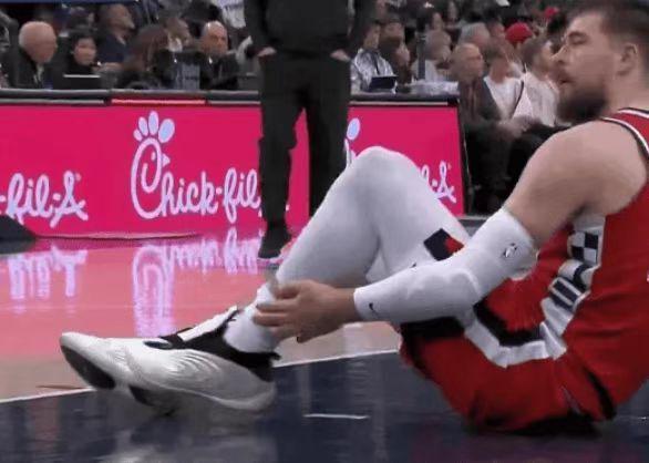 祖巴茨首节进攻落地不慎踩到詹姆斯脚上崴脚,随后返回更衣室提前退赛。