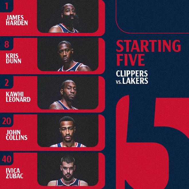 湖人:詹姆斯36分4板3助2断、拉拉维亚12分11板6助2断、东契奇12分5板2助、史密斯9分3板1助、海斯8分5板2助。快船:莱昂纳德32分12板3助3断2帽、哈登21分4板10助2断、科林斯17分12板2断2帽、大洛佩兹11分5板2帽。