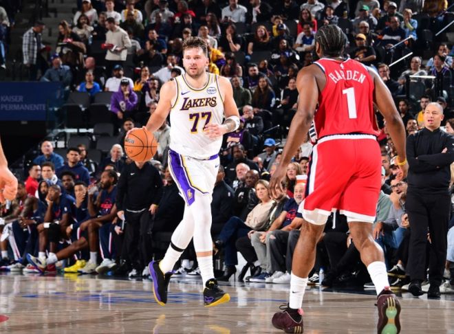快船103-88湖人逃离西部垫底,伦纳德32+12,詹姆斯36分,东契奇伤退