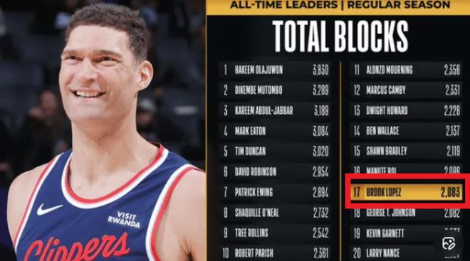 数据显示,大洛佩斯三节已经砍下31分2篮板1助攻2盖帽,生涯总盖帽数来到2083次,升至NBA历史盖帽榜第17位,再加上生涯新高的三分,一战连创两大NBA神迹!