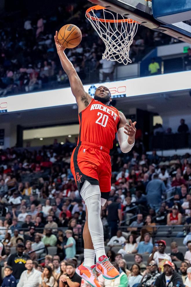 有意思的是,上赛季两位球员大部分时间都是在替补阵容里出战,而现在,他们两人已经成为了火箭队的正式首发后场。虽然两位球员更像是前锋组合,然而在火箭队全新的阵容当中,他们二人客串后卫。阿门在控卫位置上,虽然投射能力不行,但是他现在在这个位置上游刃有余,既能传球持球,也能够突破攻框。伊森更是火箭队的神射手,本赛季他的三分命中率位居联盟第一,两人优势互补。