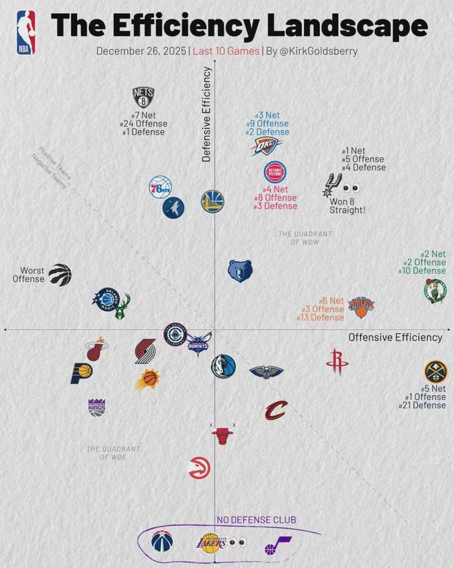 外线开了瞄准镜!本赛季至今三分效率最高的5名球星 新秀力压库里