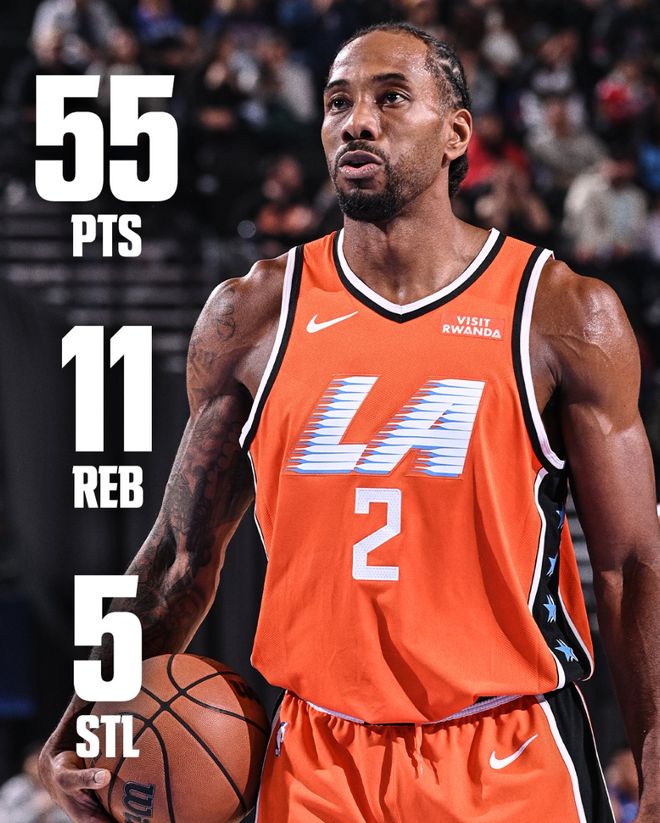 轰55分11板5断3帽,小卡成NBA历史首人!快船斩东部第一豪取4连胜