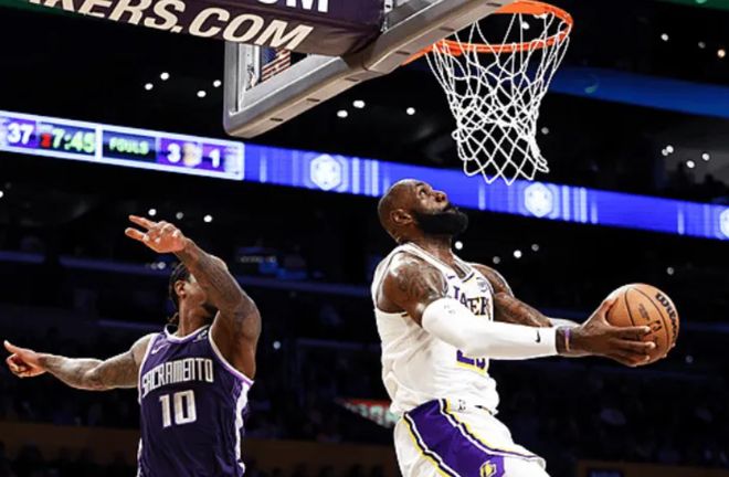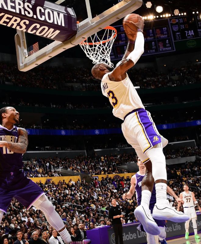 第四节决战,尼克-史密斯持球三分再投进,三分6中5已经轰下21分。詹姆斯顶着两人上篮打成2+1,随后前场接球起飞再次完成滑翔战斧劈扣,让人担心的是,落地后似乎腰部不适下场休息,领先这么多千万别伤了。比赛失去悬念,最终,湖人125-101以24分之差大胜国王队,强势终结3连败。