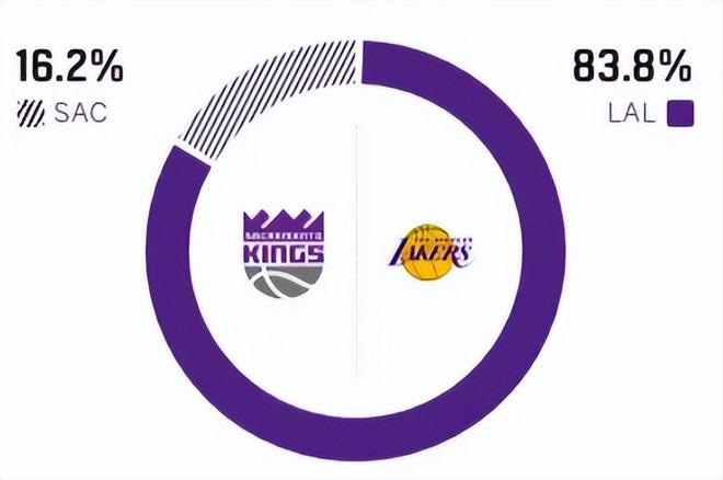 赛前,美媒ESPN对本场比赛进行了胜率预测,国王胜率仅有可怜的16.2%, 湖人队胜率则高达83.8%, 差距非常明显。