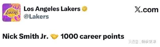 第二个好消息是双能卫尼克-史密斯,迎来了小里程碑,他生涯得分突破一千大关。尼克-史密斯作为首轮秀,在黄蜂打了两个赛季就被放弃,今年夏天他转投湖人,却数次成为球队奇兵,此战又是14投8中,高效砍下21分3个篮板。
