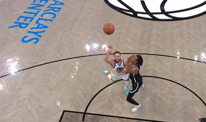 这球库里整个人已经完全失去平衡了,甚至连篮筐都看不见,但是就这样,他还能够歪着身子把球单手抛出去,最终球还划出了一个很高的弧线稳稳打进,还造成了对面的犯规,完成2+1,这个球库里打的是真神了,这个动作太秀了。