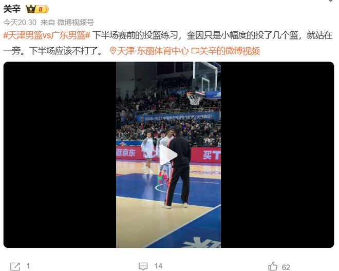 另一个好消息是广东队在上半场早早建立双位数领先,第三节打崩天津早早结束比赛悬念,全队11人轮换,一定程度上节省了主力们的体能消耗,更有利于准备下一轮和北京的大战,并且据关师傅的现场报道,奎因的伤情应该不算太严重,这也是不幸中的万幸。