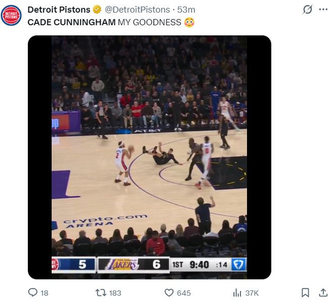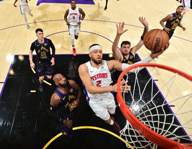 坎宁安27+11东契奇30+11 活塞22分大胜湖人