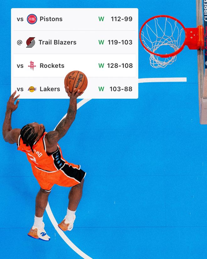 快船豪取5连胜 莱昂纳德场均37.8分!12月份取得6场胜利湖人仅5胜