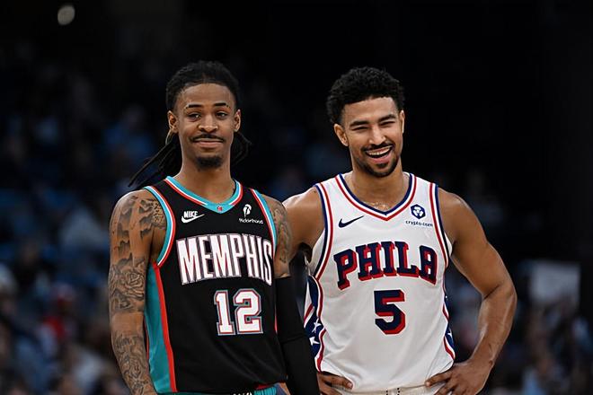 本场比赛中,76人的替补后场大将昆汀-格莱姆斯(Quentin Grimes)的表现还是非常出色的。格莱姆斯全场出场37分31秒,投篮9中4,三分线外6中2,罚球2中1,得到了11分3篮板3助攻3抢断的数据,没有失误和犯规,正负值更是达到了全场最高的+18。格莱姆斯在进攻端受制于球权没有办法为球队提供更多的支持,但是他也还是得到了一些分数的,而且他也能够在一定程度上起到分享球方面的作用。最关键的是,格莱姆斯在防守端的表现确实是相当突出,他确实是能够在防守端起到关键的作用。格莱姆斯防守贾-莫兰特(Ja Morant)的效果相当不错,格莱姆斯一下去,莫兰特就能随便乱杀了。以莫兰特的状态,如果没有格莱姆斯,他应该是能打出50+的数据的。+18的正负值也能够说明一点,格莱姆斯在场上对于比赛的影响力非常惊人。
