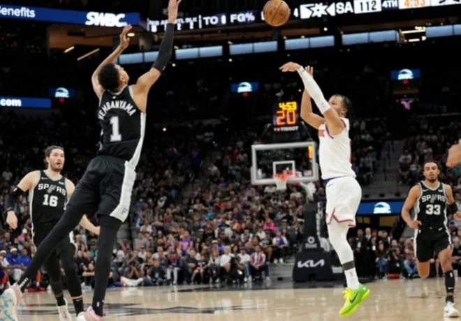 NBA常规赛今天继续进行,圣安东尼奥马刺队在主场迎战纽约尼克斯队。