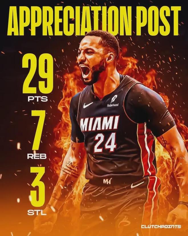 此役上赛季效力快船的鲍威尔,继续大发神威,投篮23中12,其中三分球14中7独揽36分2板2助1断,再度成为迈阿密人的英雄,热火目前以19胜15负位列东部第七。