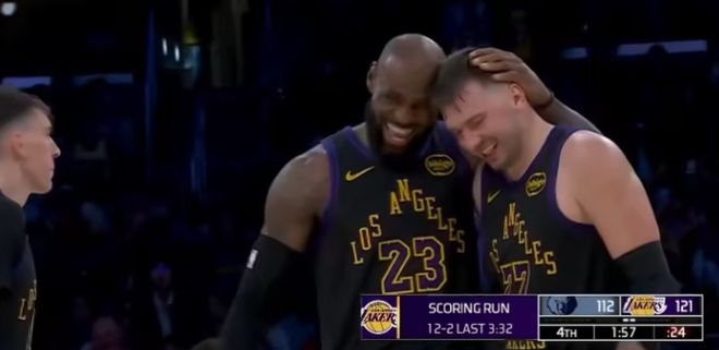 第四节决战,詹姆斯背打观察,兰代尔补防瞬间直塞海斯,后者完成双手炸扣,范德彪底角接东契奇传球,大空位三分手起刀落再中,湖人领先到9分。比赛再无悬念,最终,湖人128-121险胜灰熊,拒绝15分大逆转,送给对手3连败。