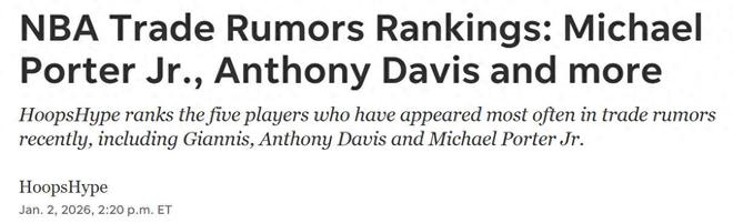 准备开抢!美媒更新交易市场TOP5大鱼:快船追浓眉+勇士有意数人