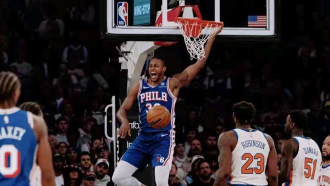 易边再战,尼克斯队试图发起反击。布伦森依旧保持着高效的得分效率,唐斯在内线的策应和篮板球保护也给球队提供了二次进攻机会。然而,76人队总能在对手起势时给予回应。恩比德在内线的牵制力为外线射手创造了大量空间,而马克西的持续输出则稳住了军心。乔治虽然得分不及队友,但在组织和防守端贡献巨大。第三节结束时,76人队以99-87握有两位数的领先优势。