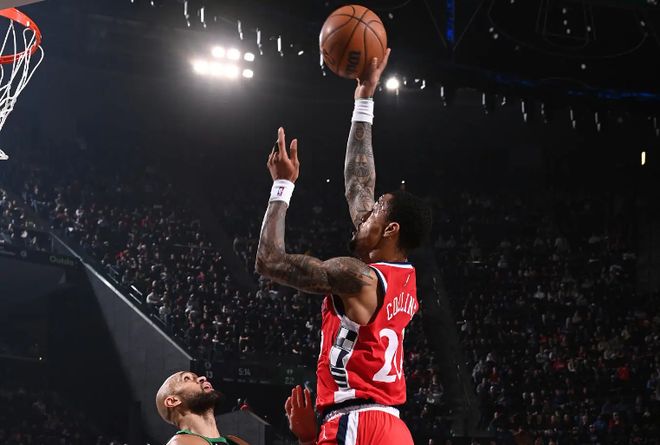在上赛季的NBA常规赛中,科林斯受到伤病的影响在82场比赛中总共只代表老东家犹他爵士出场40次,场均出场时间达到了30.5分钟,场均数据为18.9分8.2篮板2助攻1抢断1盖帽,还有2.6次失误和2.9次犯规,投篮命中率52.7%,三分命中率39.9%,罚球命中率84.8%。在此前的NBA季前赛中,科林斯总共出场4次,场均出场时间达到了17分钟,场均数据为12分3.8篮板0.5助攻0.2抢断0.5盖帽,还有1.5次失误和1.2次犯规,投篮命中率59.3%,三分命中率57.1%,罚球命中率85.7%。本赛季开季至今,科林斯在前34场比赛中总共出场33次,场均出场时间达到了26.6分钟,场均数据为12.6分4.8篮板0.9助攻0.9抢断0.7盖帽,还有1.4次失误和2.5次犯规,投篮命中率53%,三分命中率36.1%,罚球命中率83.6%。