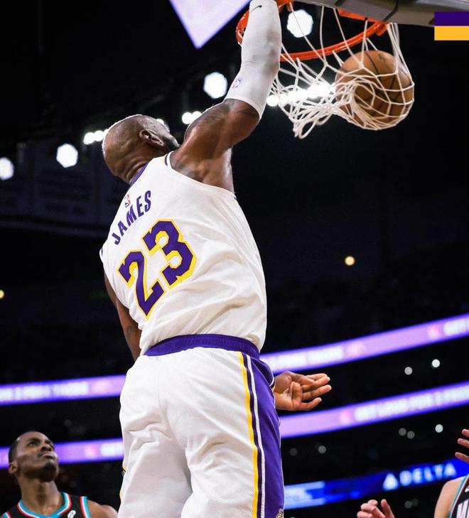 比赛那天斯台普斯中心的气氛也不一样。第一节湖人被压着打,詹姆斯在场时球队净输16分,全场都替他捏把汗。那时候镜头扫过他,汗水顺着脖子往下淌,喘得挺重,脚步也没那么飘了。可下半场就像换了个人,特别是第四节,连续两次突破分球助攻队友底角三分命中,还有一次快攻中背身单打小贾伦·杰克逊,转身勾手打进,那一刻你真会觉得时间在他身上失灵了。