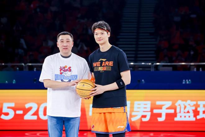 与球队名宿一同回来的,还有荣誉。在接受功勋纪念章后,老队长章文琪手持一枚镌刻着2001-2002赛季夺冠阵容全体成员签名的纪念篮球,郑重地交到现任队长王哲林手中,背后的含义不言而喻。