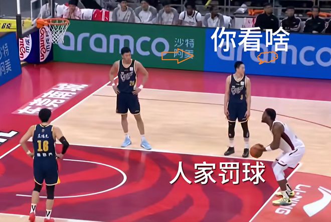 然而,让人哭笑不得的是,约翰逊罚球的时候,胡明轩往前场看,不知道在看什么,也许是杜锋在那里叫,也许是有搞笑的事……