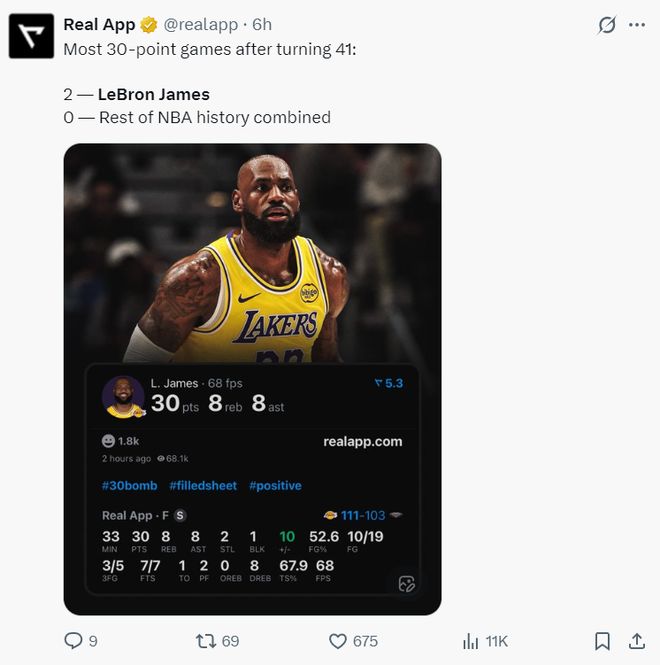41岁勒布朗又创4历史第一!近三战场均29+8+8 湖媒:永远不该退役