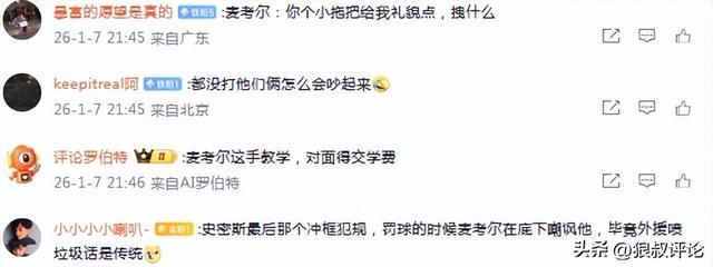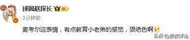 媒体人赵探长发文点评:“麦考尔这表情,有点教育小老弟的感觉,狠绝色啊”。