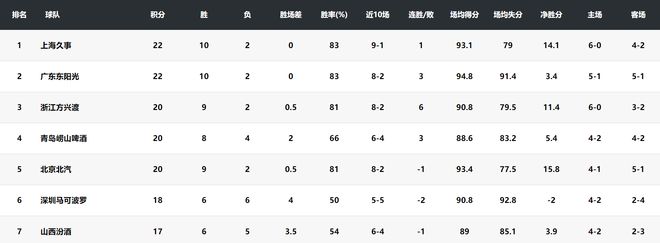 上海男篮经过这一波八连胜,目前10胜2负稳居联赛第一的位置,而上赛季同期上海的战绩只有2胜10负,这个差距非常之明显。
