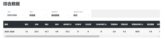 本赛季王哲林场均22.6分钟,拿到12.1分7.1篮板1.5助攻0.4抢断1.2盖帽,命中率72.2%,罚球命中率60.8%,这是王哲林职业生涯效率最高的时刻,场均1.2盖帽也是21-22赛季后最高,换言之体能充足时大王也能护筐。