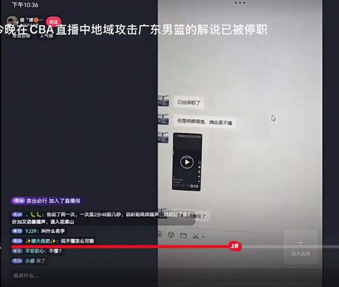 真相大白,CBA解说内涵广东球迷身份被扒,平台回应:已经停职了