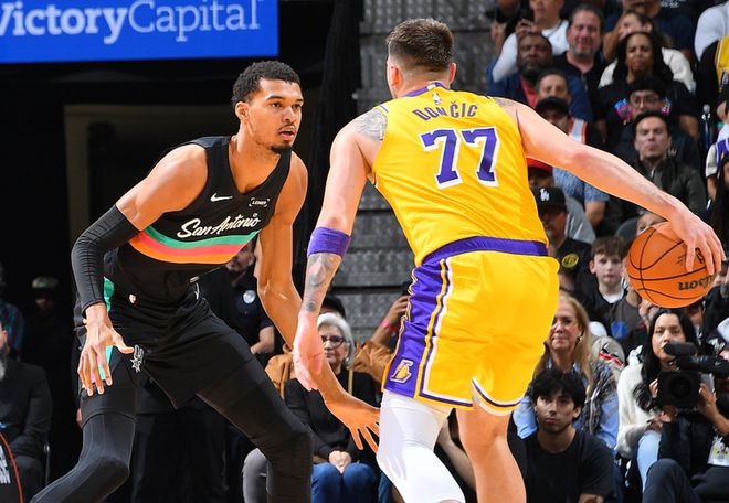湖人91-107不敌马刺,东契奇38+10+10,詹姆斯缺阵,文班亚马16+14+4帽