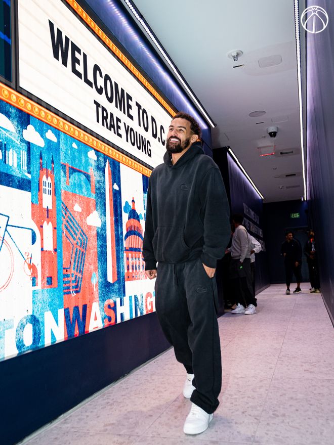 特雷-杨已经抵达奇才主场,虽然他因伤不会出战今天的比赛。他在更衣室里展示了自己的3号球衣。由于奇才的11号球衣已为埃尔文-海耶斯退役,所以特雷-杨选择换号。他也在社媒上发布了个人声明,这是交易消息曝光后他首次公开发声。