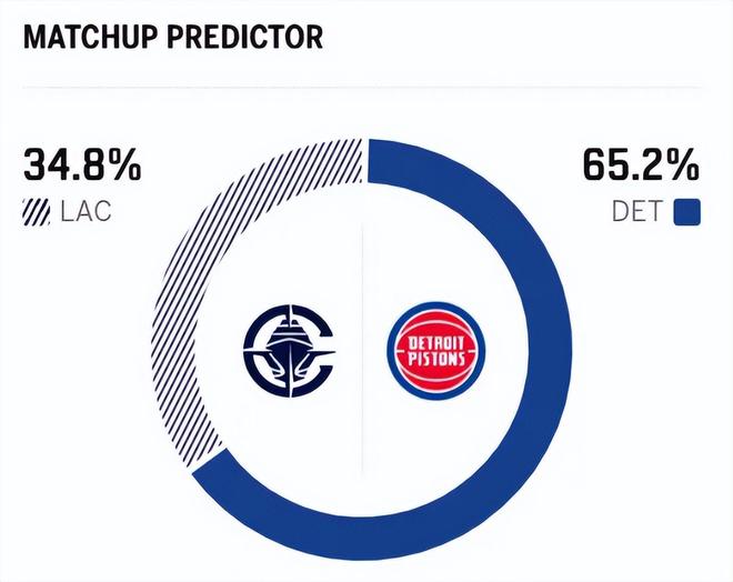 赛前,美媒ESPN对本场比赛进行了胜率预测,快船队胜率仅有34.8% ,活塞队胜率则高达65.2% ,差距非常明显。