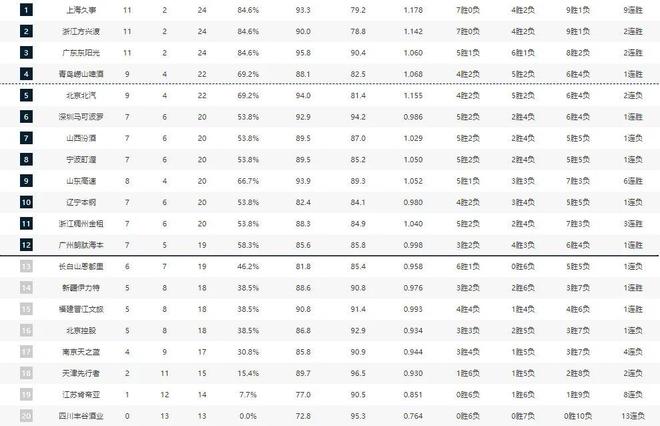 CBA最新排名榜:上海傲视群雄,广厦广东紧随其后,辽宁掉出前八