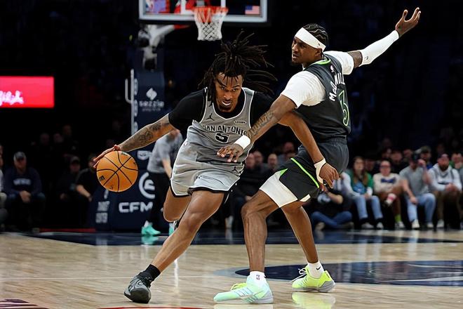 在此前的一场NBA常规赛中,主场作战的明尼苏达森林狼在末节完成了大逆转,他们凭借着安东尼-爱德华兹(Anthony Edwards)的准绝杀以104比103险胜了圣安东尼奥马刺。本场比赛后,在最近6场比赛中拿下了5场胜利的森林狼的战绩提升到了26胜14负,继续排名西部第4位;而结束了两连胜的马刺的战绩则是下滑到了27胜12负,继续排名西部第2位,但是与身后的两支球队的胜场差只剩下了1.5场。