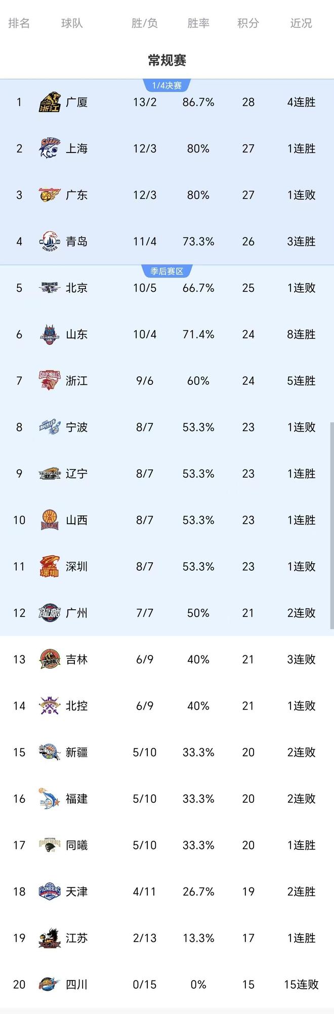 随着北京惨遭翻盘,辽宁险胜新疆,深圳惨败,CBA最新积分榜有变
