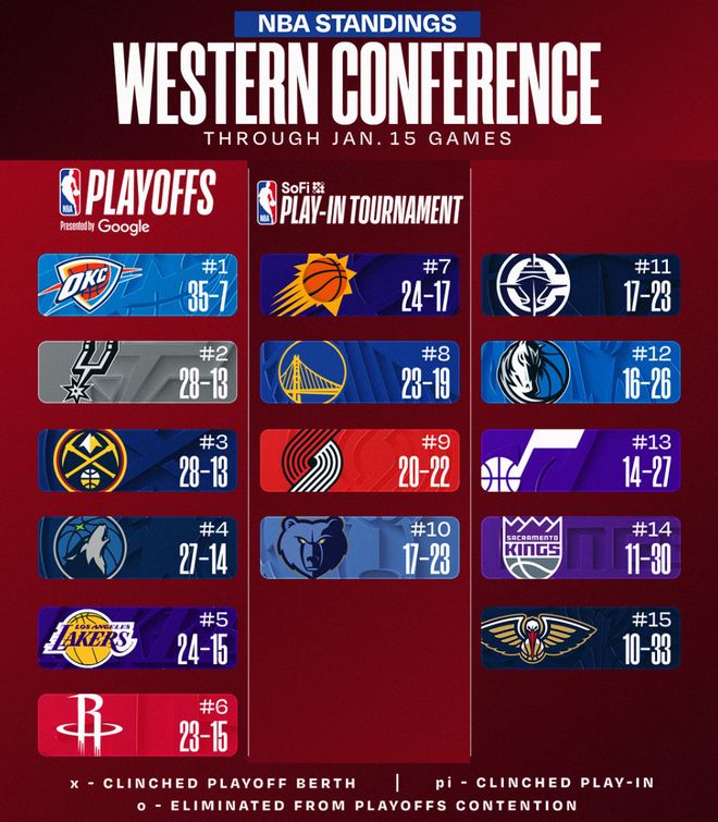 美媒评级30队半程表现:雷霆等三队评A+ 火箭B湖人C国王最差F