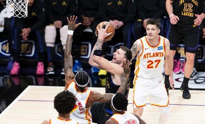 沃克虽然砍下26分4篮板3助攻,麦科勒姆贡献25分3助攻,但两人合力也难以扭转大局。老鹰的进攻在湖人严密的防守体系面前显得异常挣扎。其实湖人从比赛一开始就掌控了节奏。首节詹姆斯与东契奇双核同时发力,球队迅速建立7分领先优势。进入第二节,东契奇突然进入“杀神模式”,他连突带投一人主导了一波21-4的恐怖攻势,帮助湖人将分差瞬间拉开到21分。上半场结束时,湖人以81-60领先21分,这也是他们本赛季单节得分新高,充分展现了火力全开的恐怖状态。