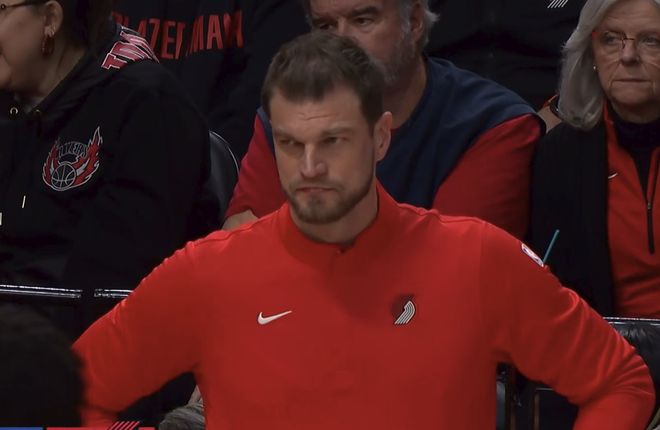 在这场与湖人的比赛之前,开拓者再次宣布在发展联盟召回杨瀚森,小杨坐在替补席第二排等待机会。首节开拓者打得极具杀伤力,裁判频频吹罚湖人球员犯规。开拓者第一节结束以40-27领先,开拓者全队罚球22次,罚球得分17分,湖人的罚球仅为3中2。第二节湖人赢了3分,随着夏普高高跃起空接扣篮,半场打完开拓者71-61湖人。