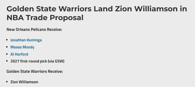 哇塞!4换1交易方案!美媒建议勇士梭哈锡安