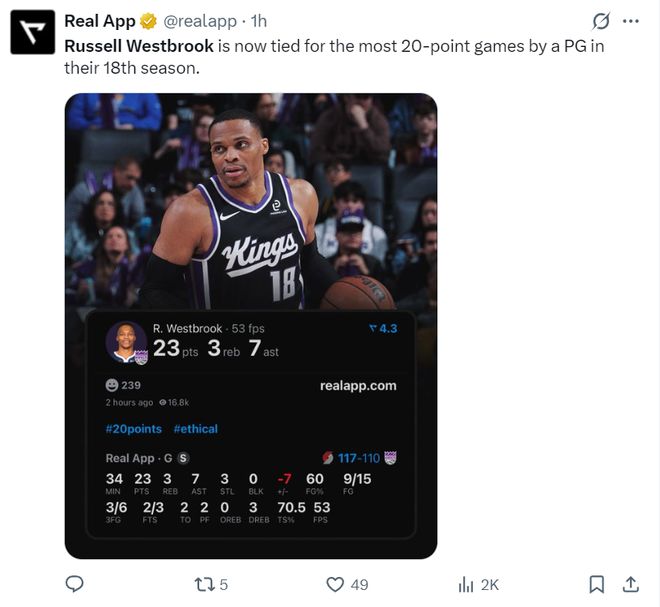 国王110-117惜败开拓者结束了四连胜。这场比赛威少、蒙克两位小后卫拿到了国王最高的23分,威少更是在完成2+1后开始摇娃娃,虽然国王输球了但37岁的威少延续了自己高光的表现。