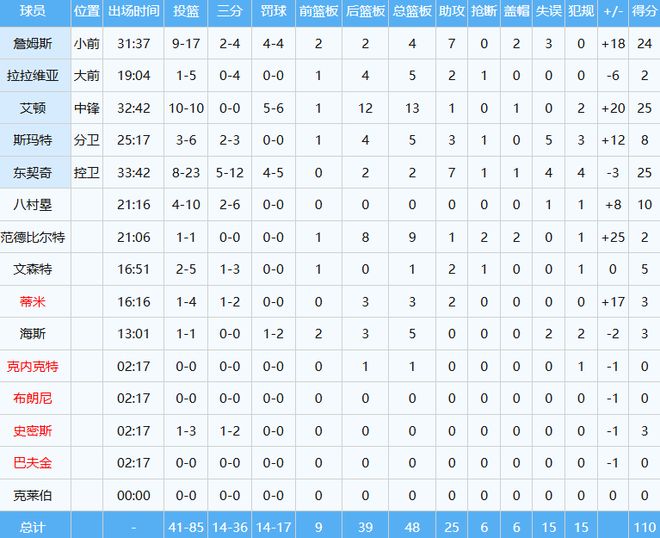 詹姆斯20分场次并列今年联盟第一!正负值全队第一!