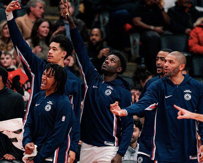 快船赛季前27场表现十分糟糕,场均拿到110.9分,失分高达117分,只取得6胜21负;可在过去14场比赛则在防守端提升,场均只丢106.3分,取得12胜2负的成绩。本赛季伦纳德的表现十分出色,场均拿到28.2分6.3篮板2.2抢断,可惜又一次遭遇伤病困扰;哈登则拿到25.8分8.1助攻。