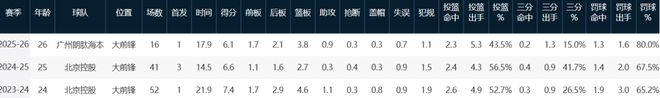 本赛季至今,陈国豪出战16场首发1次,场均上阵17.9分钟贡献6.1分3.8板,投篮命中率43.5%,这位23届状元在换队后发挥照样未达预期,场均得分已来到生涯新低。