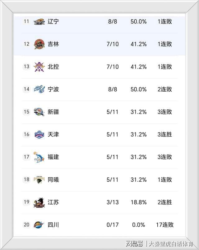 ④、四川17连败继续垫底。