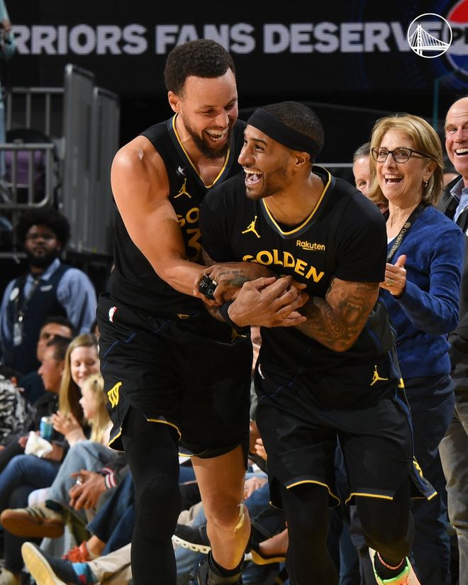 勇士队的波兹姆斯基得到24分、6个篮板和4次助攻,库里得到19分和11次助攻,巴特勒得到17分和4次助攻,他在第三节伤退。希尔德得到16分和4个篮板,普斯特得到15分和9个篮板,穆迪得到13分和4个篮板,霍福德得到10分和8个篮板,勇士队连续四场投中至少20个三分球,这追平联盟纪录。热火队的鲍威尔得到21分,维金斯得到18分和5个篮板,冯特奇奥得到13分和8个篮板,威尔得到15分和4个篮板,哈克斯得到10分、5个篮板和9次助攻,阿德巴约得到4分和12个篮板。