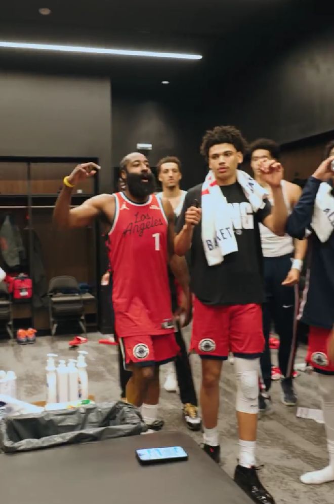 1月20日消息,1月20日结束的NBA常规赛中,快船在客场以110-106险胜奇才,双杀对手豪取6连胜。本场比赛,哈登爆砍36分7篮板9助攻,赛后他在更衣室搂着助理教练范甘迪,带头为他庆祝生日,十分暖心!