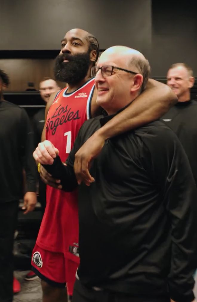 赛后,哈登接受了记者采访,谈到杰夫·范甘迪,他说道:“他会在我储物柜里留便条,还给我发短信,感觉这就像一段非常真挚的关系一样。他真的非常棒,绝对是独一无二的好。他对篮球的理解非常深刻。我们一见如故,一拍即合。”