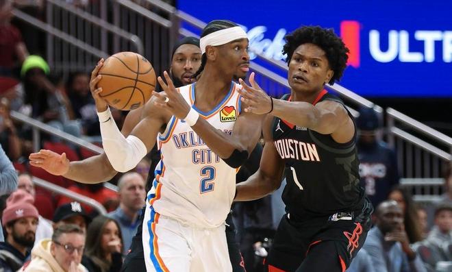 乌度卡显然希望通过篮板控制权掐死雷霆的快速推进节奏,将比赛拖入泥潭式的阵地肉搏,然后利用夹击和包夹限制持球核心,同时依靠二次进攻蚕食分数。雷霆这边同样针对性极强,他们对杜兰特和申京的持球采取围剿式防守,一旦两人拿球就迅速形成包夹,迫使火箭核心球员在高压下做出选择。这种核心对核心的针对性防守,让双方当家球星都打得比较吃力。雷霆第一得分手亚历山大全场仅出手11次命中6球,罚球8中7,贡献20分2篮板4助攻2盖帽。虽然得分不算爆炸,但他成功延续了连续112场至少20分的惊人纪录。