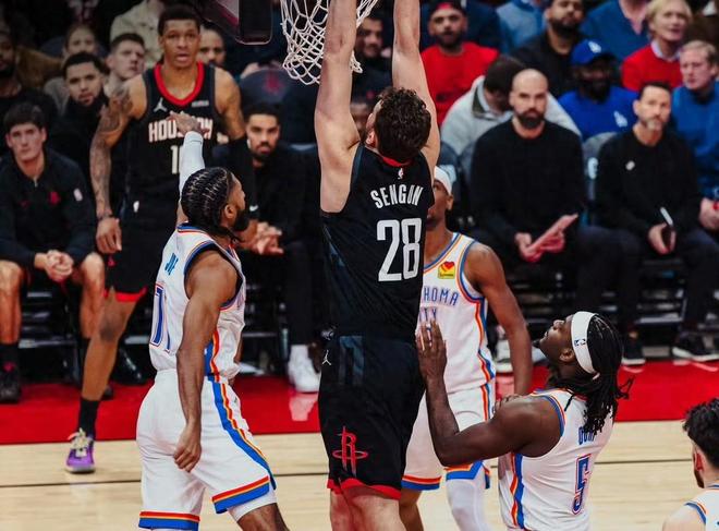 从球员数据来看,雷霆确实赢在均衡性与板凳韧性。霍姆格伦贡献18分9篮板1助攻2抢断4盖帽,几乎攻防一体;但米切尔替补砍下17分成为奇兵;华莱士则拿到8分,三分4中2,多尔特13分,杰威虽然投篮11中2仅得6分,但送出10次助攻并在防守端稳健,雷霆这些角色球员的多点开花,正是雷霆能够碾压火箭的关键。反观火箭,史密斯上一次击败公牛后,今天再次强势反弹拿到17分10篮板,是少数亮点;申京14分13篮板5助攻,两双表现中规中矩;亚当斯6分11篮板2盖帽,一如既往地稳固内线。
