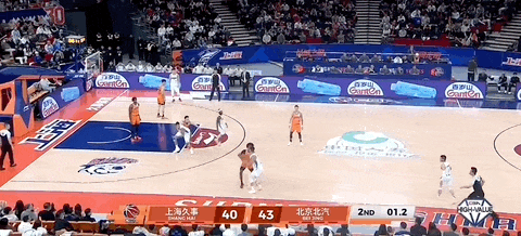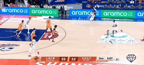 杰曼面对刘礼嘉,从左路突进,将球塞给塔瑞克,后者跃起擦板得分。古德温带球,分刘礼嘉后回传到自己手上,正面拔起三分不进。杰曼拿到篮板,一条龙直冲篮下,拉杆再进!北京队将比分逼近到30-34,上海队叫停比赛。